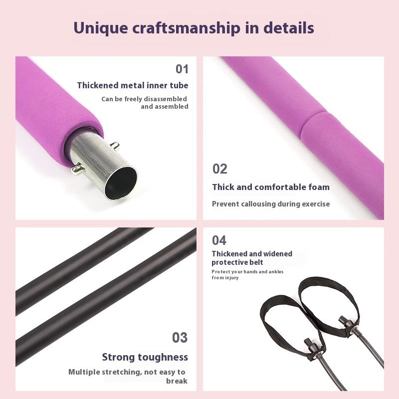 Tone and strengthen your core, glutes, arms, and legs with this compact Pilates stick with tension rope. Perfect for home workouts, it helps slim, lift, and sculpt your body efficiently.